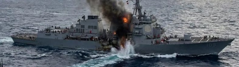 “In the Indian Ocean, an American submarine sunk an Iranian warship that thought it was safe in international waters. Instead, it was sunk by a torpedo. Quiet death. The first sinking of an enemy ship by a torpedo since World War II. Like in that war, back when we were still the War Department, we are fighting to win.”